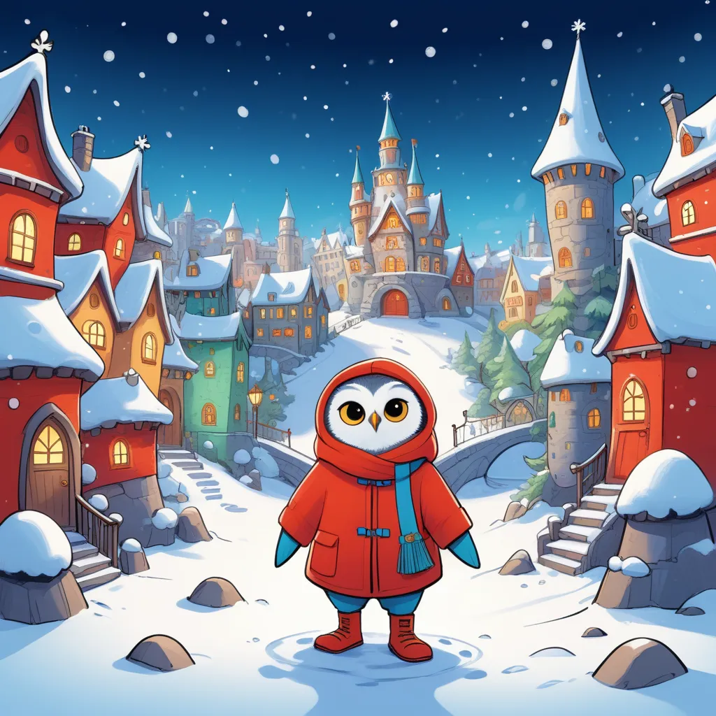 Peter lay on the ground and started to wriggle like a fish, making beautiful snow angels. Just then, he heard a sound—a soft plop! He turned to see a fantastical snow owl perched on a mailbox, its eyes gleaming with wisdom. The owl blinked and dropped a sparkling snowflake pendant at Peter’s feet before flying away.