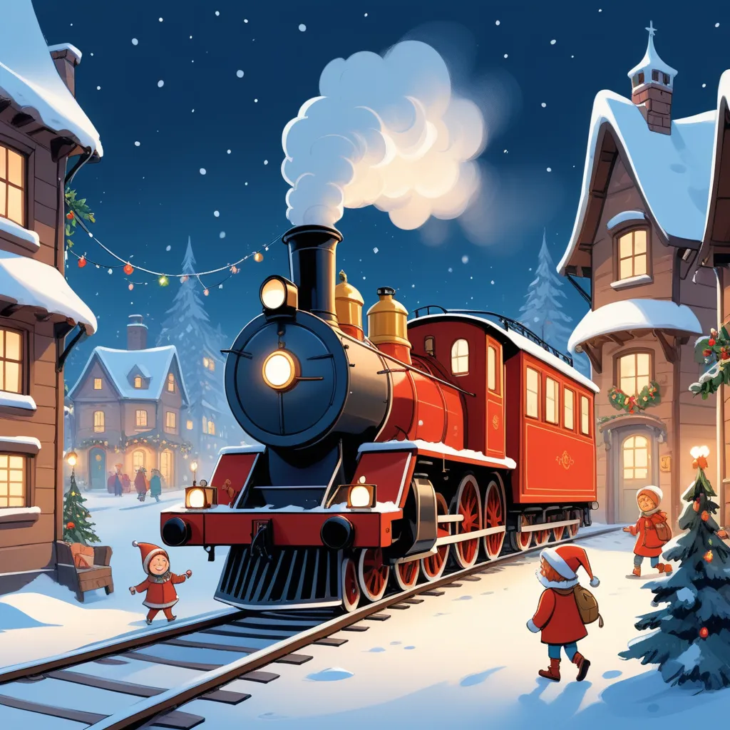On a frosty Christmas Eve, young Alex lay in his cozy bed, listening to the faint hum of the heater and the gentle rustle of snow against the window. His room was decorated with festive lights, twinkling gently, and shelves filled with books about magical adventures. As he began to drift off, a soft, distant sound reached his ears—a sound like a train whistle.
