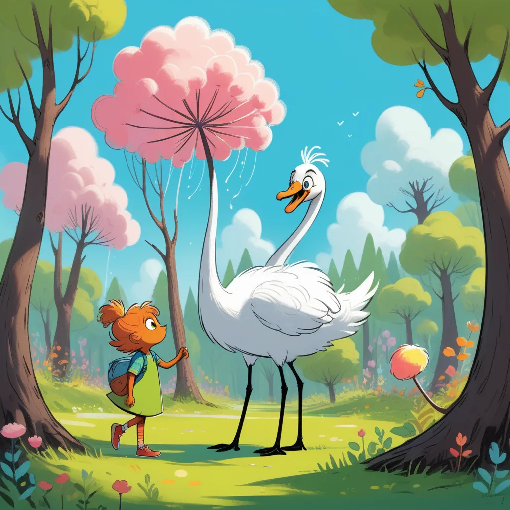 Young Mia loved to play beneath their canopies, alongside the cheerful Swomee-Swans and playful Brown Bar-ba-loots. Each day was a new adventure filled with laughter and discovery in her enchanted playground.