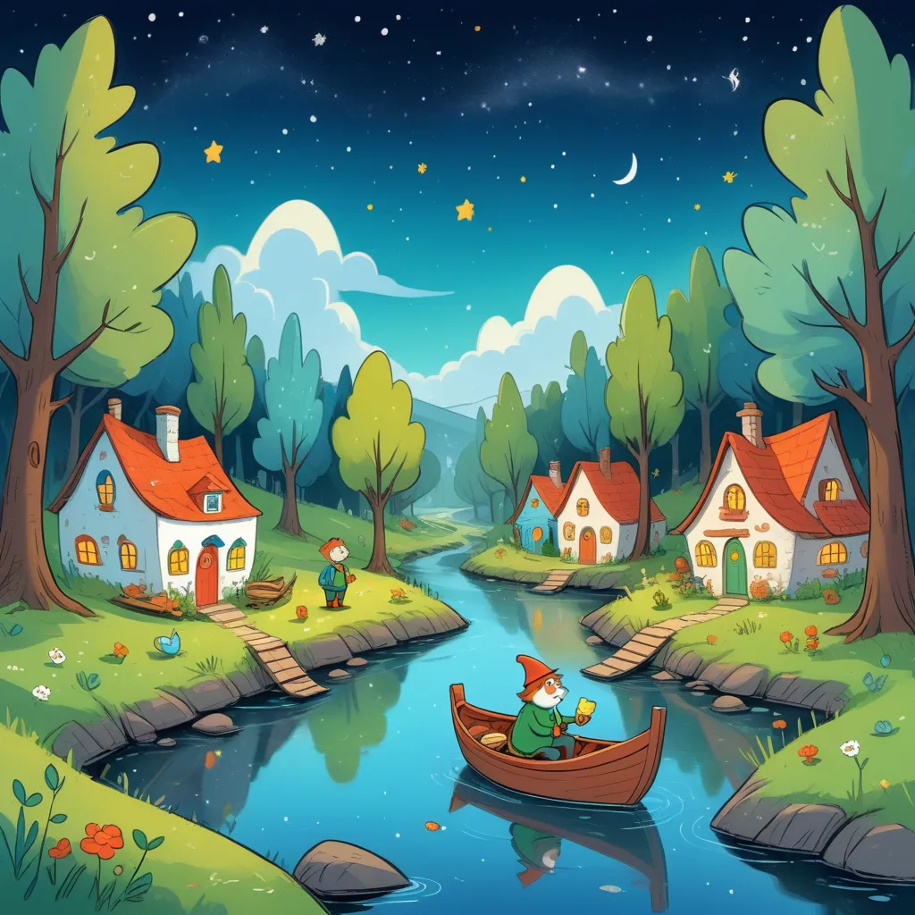 Off they went, through the whispering trees and over the hill, where the adventure breathed life into everything still. They met a friendly mouse in a frock and a goat who lived by the tick-tock of a giant clock.