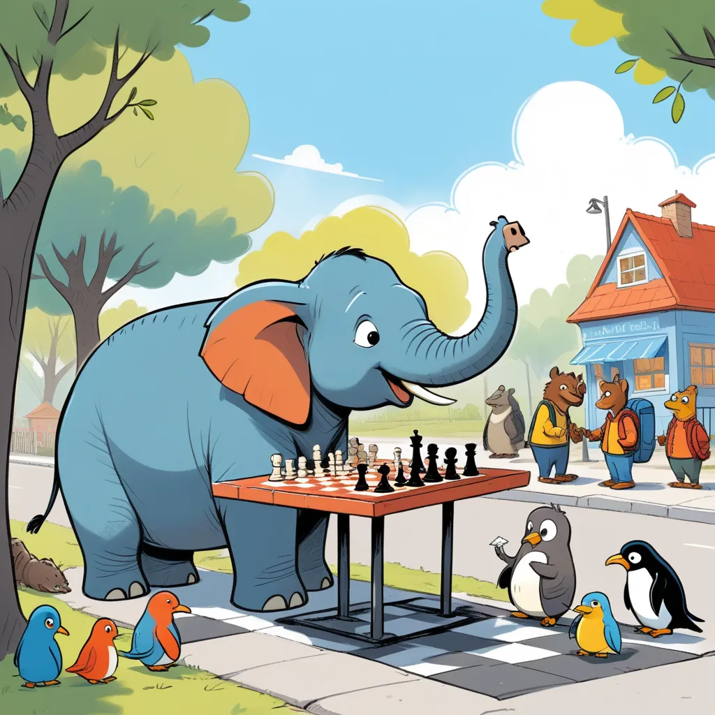 But Amos didn’t come. The animals began to worry. “Where is Amos?” asked the Elephant, moving his chess pieces nervously.