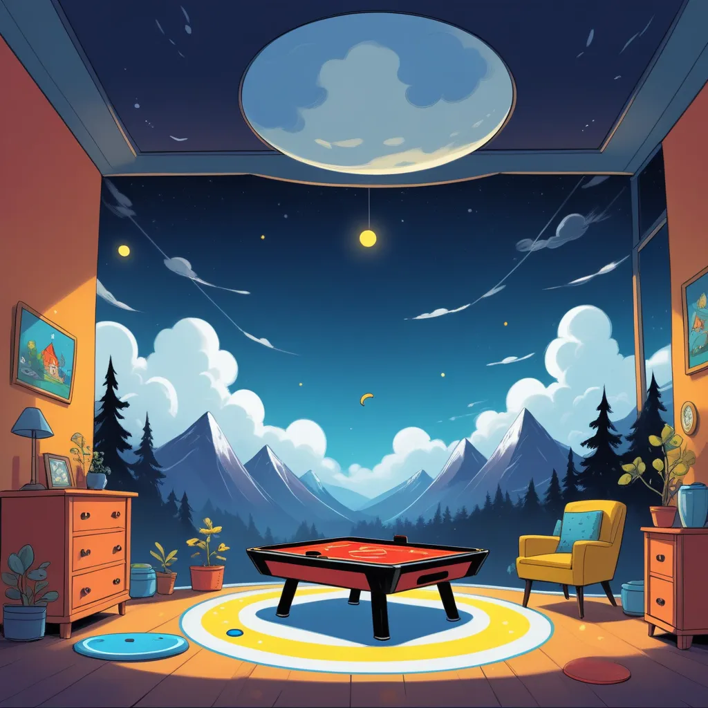 Bobby loved his bedroom. Among his beloved treasures stood a small air hockey table, gleaming softly under the dim light. It was a gift from his grandfather, who had hinted that it held more fun than met the eye.