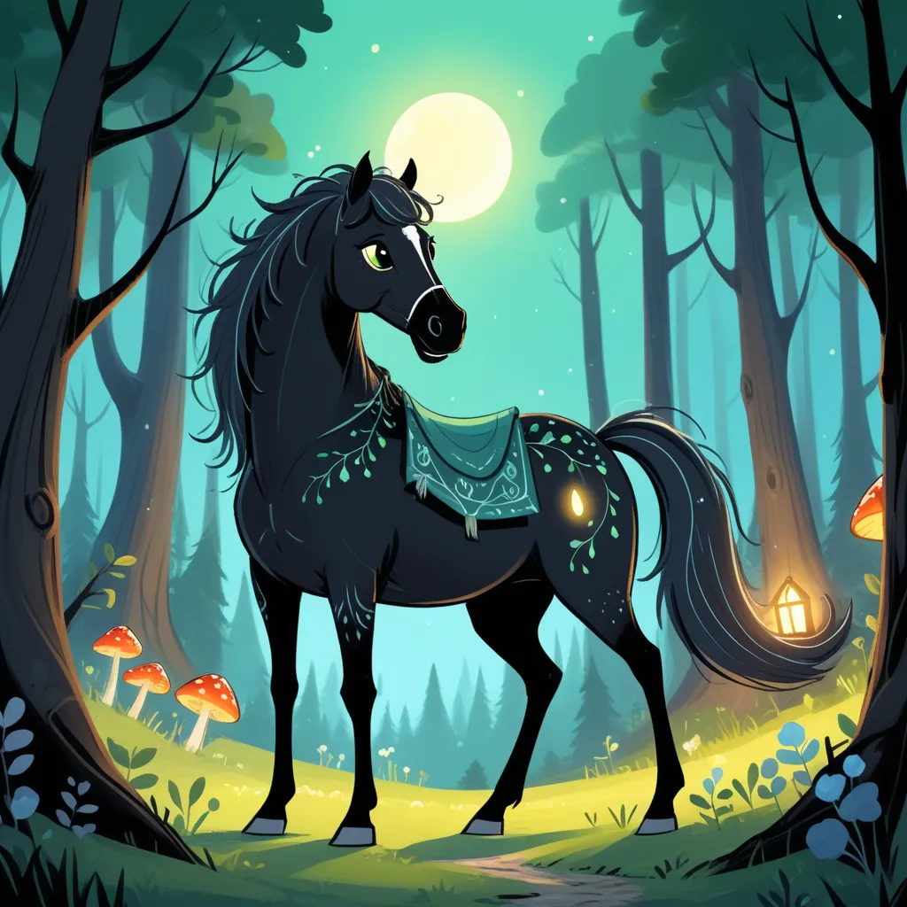 One quiet evening, Beauty and Ginger were munching on their hay when a soft, eerie glow filled the stable, as if the moon had decided to visit them. To their surprise, the glow came from a tiny, magical firefly named Flicker who buzzed around, carrying a small scroll in his tiny legs.