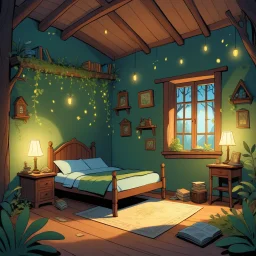 In the quiet corner of a cozy yet slightly eerie bedroom, rays of the moonlight through the curtains revealed a space filled with intriguing objects. There was a bookshelf packed with adventure books, a toy chest brimming with stuffed animals, and, most fascinating of all, a small, ornate box that seemed to shimmer in the dim light. This was Max's room—where every night, anything could happen.