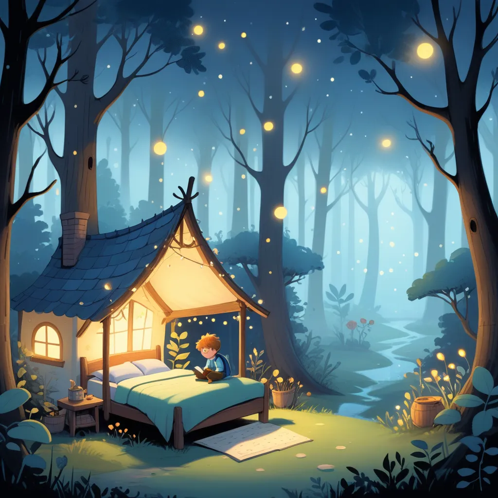 In a cozy yet slightly eerie little town in France, surrounded by misty forests and whispering willow trees, there lived a boy named Louis. Louis's bedroom was a magical place filled with shelves of peculiar books, jars of sparkling fireflies, and maps of imaginary lands. But at night, the room would transform when the moonlight danced on his walls, casting shadows that resembled mystical creatures.