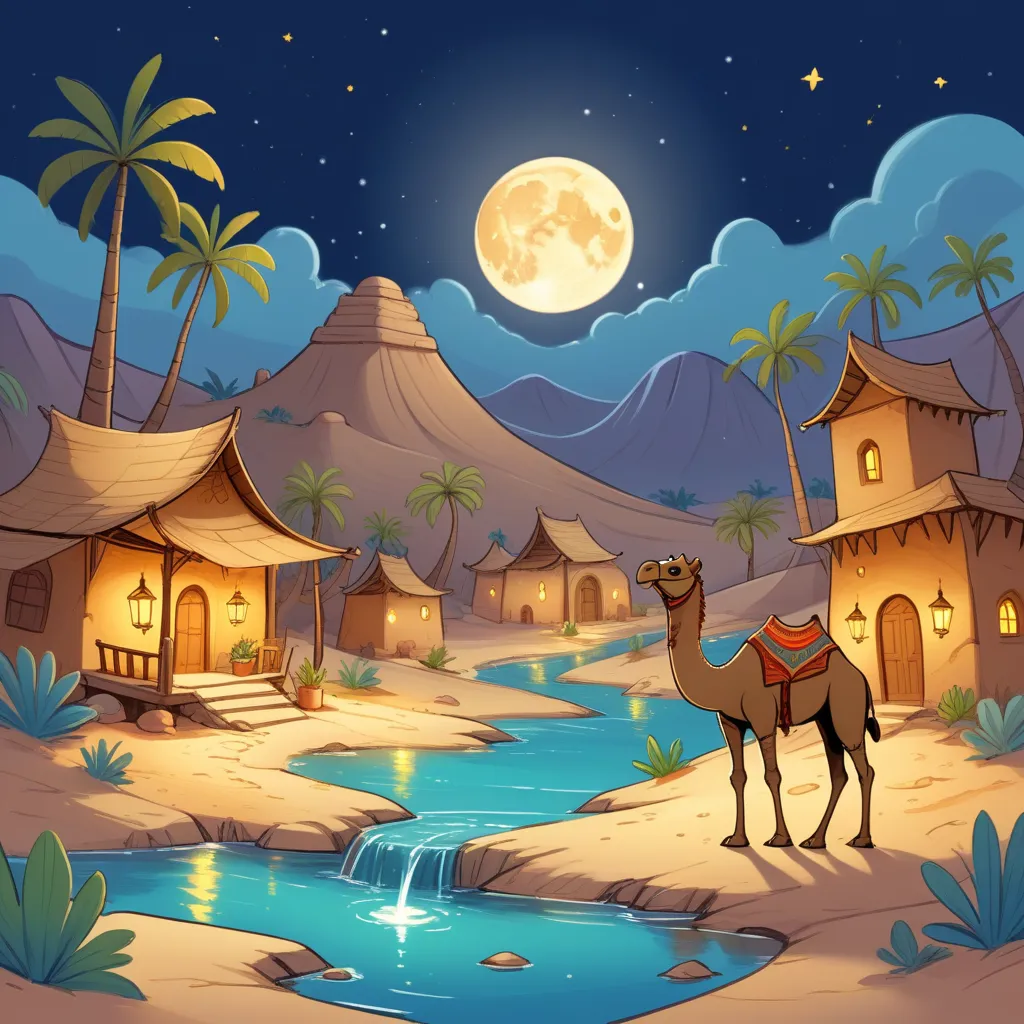 Once upon a time, in a quiet desert village, there lived a brave young camel named Camilla. Camilla's home was a cozy stable filled with soft sand and brightly colored lanterns that glowed softly at night. But sometimes, when the wind whispered through the village, it sounded like it carried secrets from faraway lands.