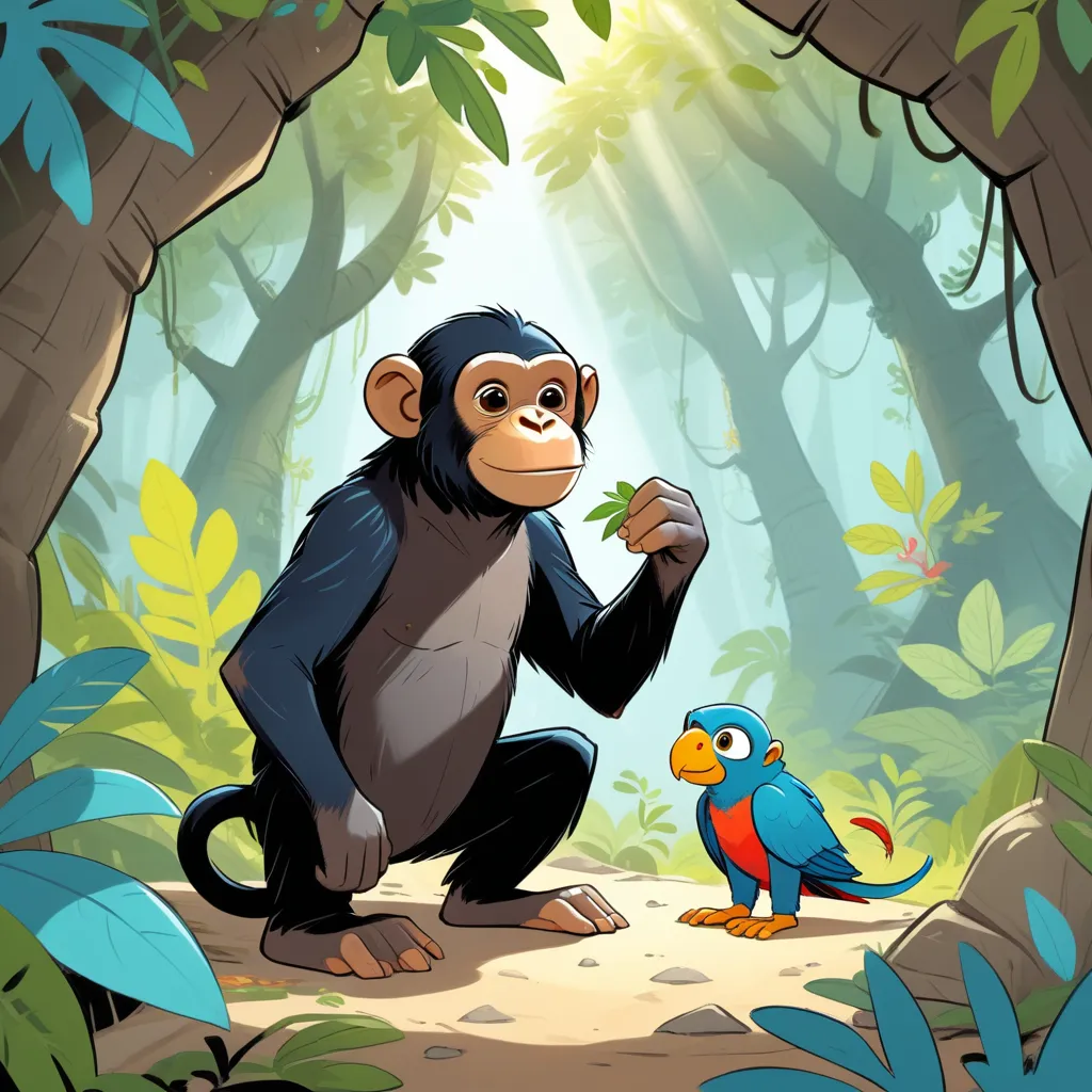 And so, Chip the Chimpanzee and Polly the Parrot returned to their den, ready for more adventures and armed with the wisdom of the Whispering Cave. They knew that no matter what challenges lay ahead, their bravery and friendship would always see them through.