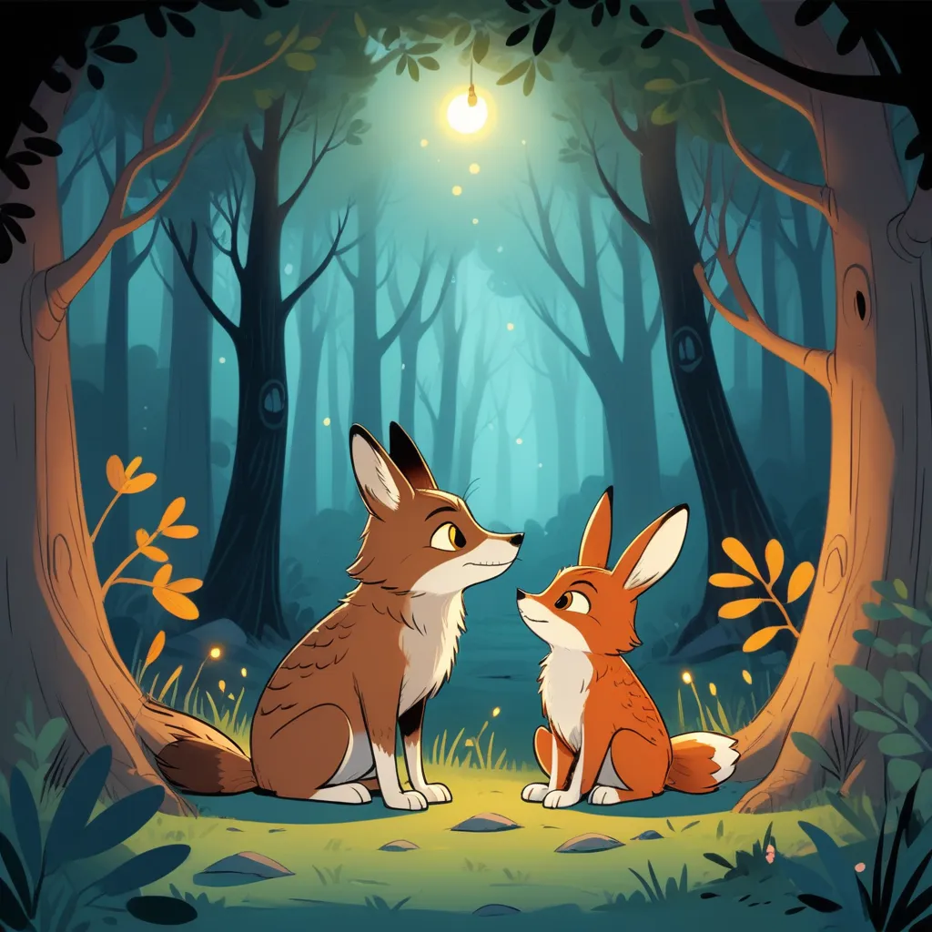 In a small valley surrounded by tall, whispering trees, lived a clever coyote named Cody. Cody’s den was cozy, with the softest moss for his bed and a small collection of shiny rocks he had gathered over the years. The forest around his den was magical, with fireflies twinkling like stars and the sound of a bubbling brook hidden somewhere in the undergrowth. But sometimes, when the wind blew just right, the whispers of the trees sounded almost like they were telling secrets.