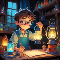 In a cozy yet slightly eerie laboratory in Sweden, there lived an adventurous inventor named Alfred. Alfred's laboratory was filled with all kinds of intriguing objects—beakers bubbling with colorful liquids, gears and levers from old machines, and maps with secret scribbles. Dust motes danced in the beams of sunlight peeking through the tall, narrow windows, casting an enchanting glow over the room.