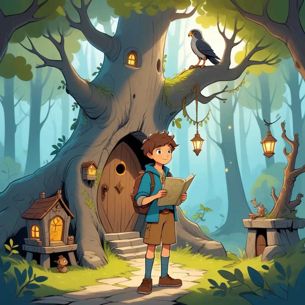 Quickly, Max grabbed his backpack, filled it with a flashlight, a compass, and some snacks. He slipped on his sneakers and, with Talon leading the way, dashed into the forest. The trees were tall and cast strange, eerie shadows, making the forest seem like a labyrinth of secrets.