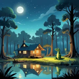 Finally, they reached the edge of the forest. As they placed the Golden Egg on a mossy pedestal, the forest seemed to come alive with a burst of magical light. The trees twinkled with fairy lights, and the moon beamed proudly down on them.