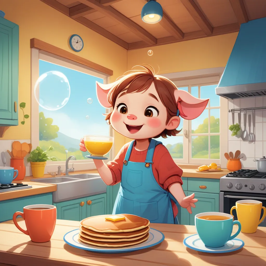 And the cozy kitchen, once again filled with the aroma of pancakes and the sound of happy giggles, saw the conclusion of yet another delightful and whimsical morning.