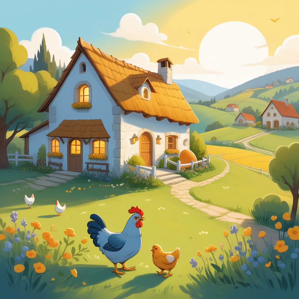 In a quaint village nestled in the hills, there lived a kind-hearted farmer named Luis and his curious daughter, Lucia. They had a small, cozy farmhouse filled with the aroma of freshly baked bread and the chatter of their beloved animals. Among these animals was their precious hen, Clara, who was no ordinary hen. Clara had gleaming golden feathers and a mysterious aura that made her stand out from all the others.