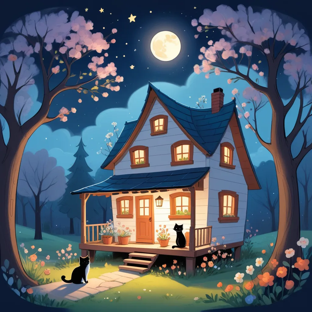 In a tiny, charming house with flowers blooming in the front yard, and a big tree that seemed to whisper secrets, lived a warm, little family. There was a mother, her young son, and a playful cat named Whiskers. The boy's bedroom was a cozy space filled with an array of adventure books, stuffed animals, and a glowing star-shaped nightlight.