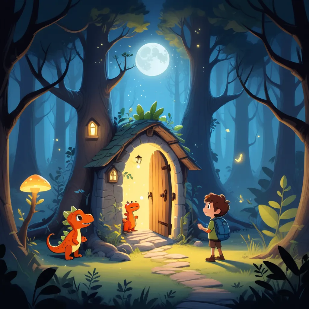 So, hand in hand, Leo, Clara, and their Mononykus friend tiptoed into the cave. Inside, glowing crystals lit up the walls, casting eerie yet beautiful patterns. And then they saw it—a giant, ancient door, locked with a puzzle.