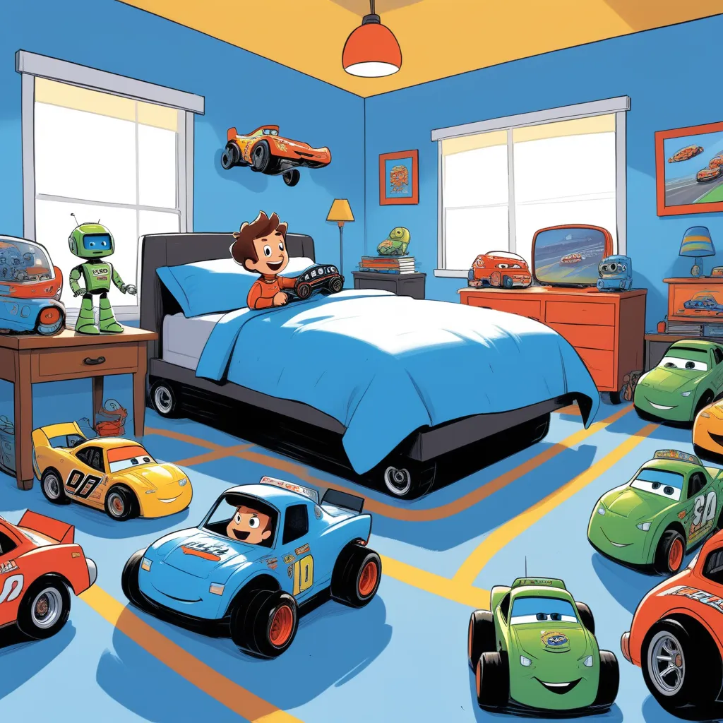 In a cozy bedroom filled with toy cars and posters of race cars, young Timmy was eagerly flipping through a book about NASCAR. The room had a comforting feel, but at night the shadows of his toy collection would sometimes look like speeding cars on his wall, adding a touch of mystery to his cozy space.