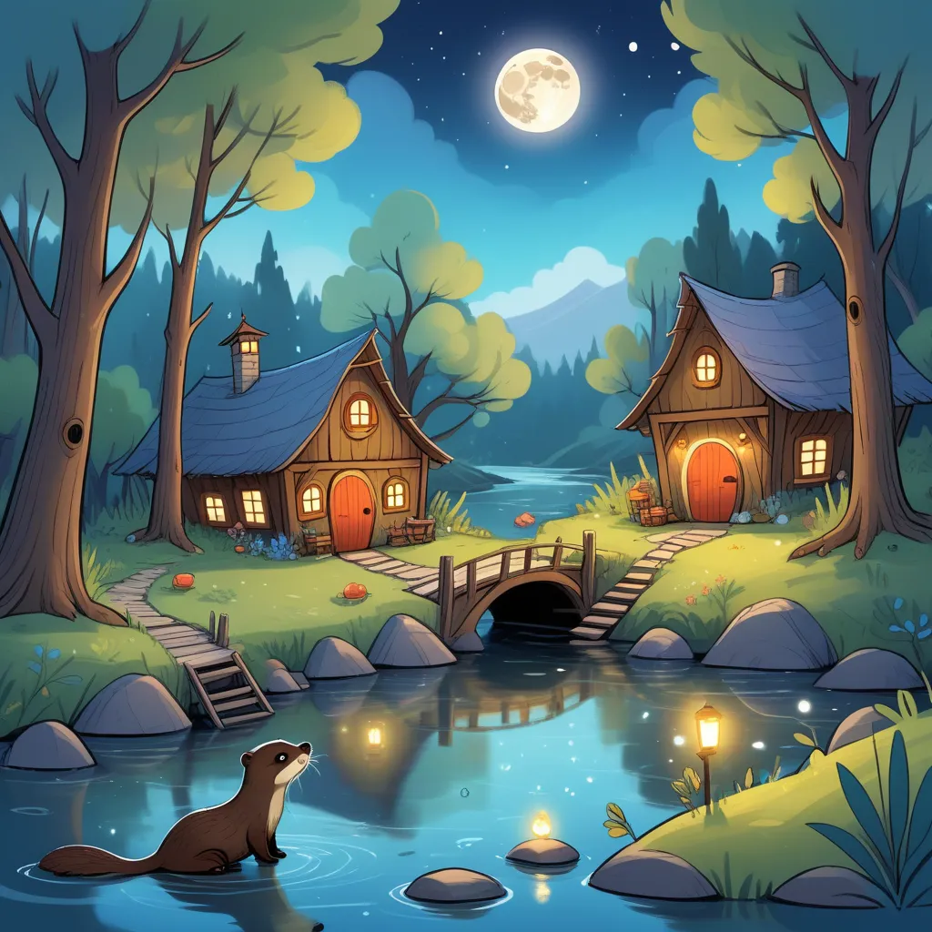 Once upon a time, in a cozy yet slightly spooky corner of Riverside Forest, lived an otter named Ollie. Ollie’s home was cluttered with shiny pebbles and mysterious trinkets from the river, which he collected during his daily adventures. One calm evening, just as the sun was dipping below the tree line, Ollie settled into his comfortable nest of reeds and soft moss.