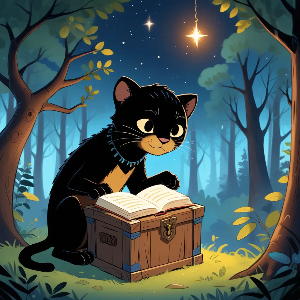 With a final nuzzle, Luna vanished into the whispering woods, a shadow among shadows, but Timmy knew they would meet again. As he returned to his cozy room, the stars on his ceiling seemed to dance with joy.