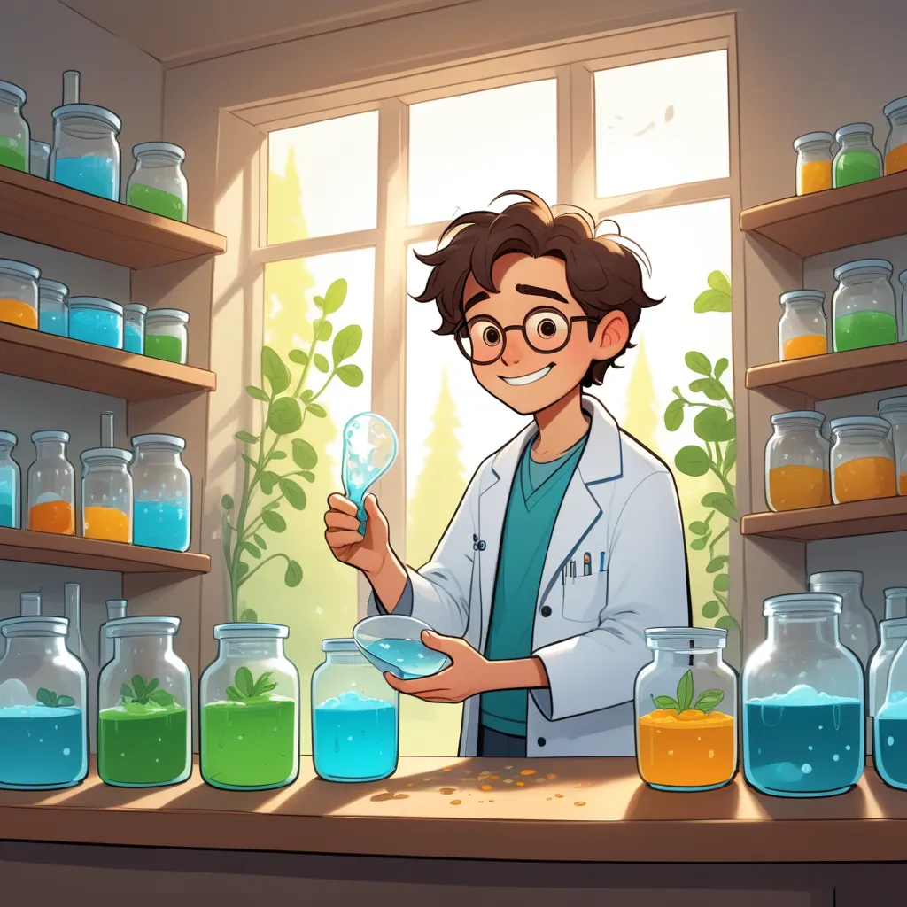 In a cozy, slightly eerie laboratory on the top floor of a big, old hospital, there lived a curious scientist named Alexander Fleming. His lab was filled with rows of books, jars with interesting liquids, and glass shelves holding mysterious experiments. It was a place where magic of science happened.