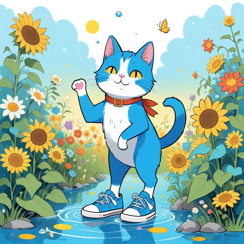 In the cozy town of Meadowbrook, where tall trees whispered secrets and colorful flowers nodded in the gentle breeze, there lived a cool, blue cat named Pete. Pete had a pair of brand-new white shoes, and he absolutely loved them.