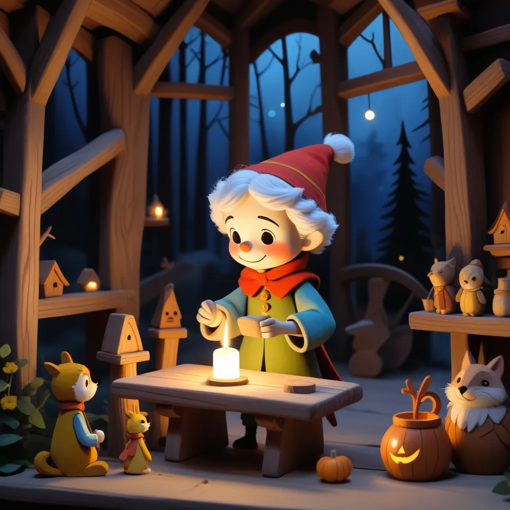 In a quaint, cozy workshop filled with wooden toys and clocks, lived an elderly woodcarver named Geppetto. The flicker of candlelight danced on the walls, casting gentle shadows over the carved figures. Geppetto’s latest creation was a wooden puppet named Pinocchio, whom he had meticulously crafted from a special piece of wood.