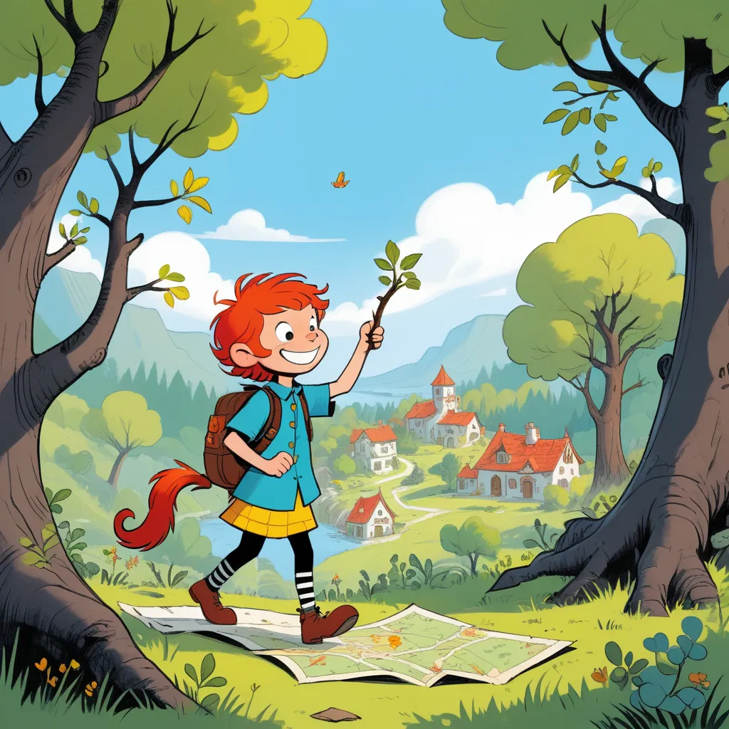 They followed the map’s clues through the attic, down to the garden, and into the nearby woods. Every step of the way, Pippi confidently led the children, her bravery shining through. She cleared branches blocking their path and solved riddles that the map presented.