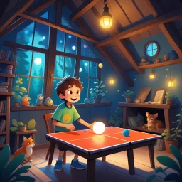 In a tiny bedroom bathed in the soft glow of night lights, young Tom admired his treasure trove of action figures, books, and a new, shiny skateboard propped up against his bed. The moonlight seeped through the curtains, casting playful shadows on the walls, creating an atmosphere that was cozy and slightly eerie. Tom’s heart thumped with excitement; the skateboard promised new adventures.