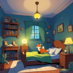 In a little wooden house nestled in a snowy forest, lived a young girl named Elara. Her bedroom was filled with shelves of fascinating books, old wooden toys, and peculiar trinkets she had collected during her walks in the woods. One brisk winter evening, as the wind howled outside, Elara curled up with her favorite blanket, feeling cozy yet curious. The full moon cast an eerie glow, turning the frosted windows into shimmering, magical mirrors.