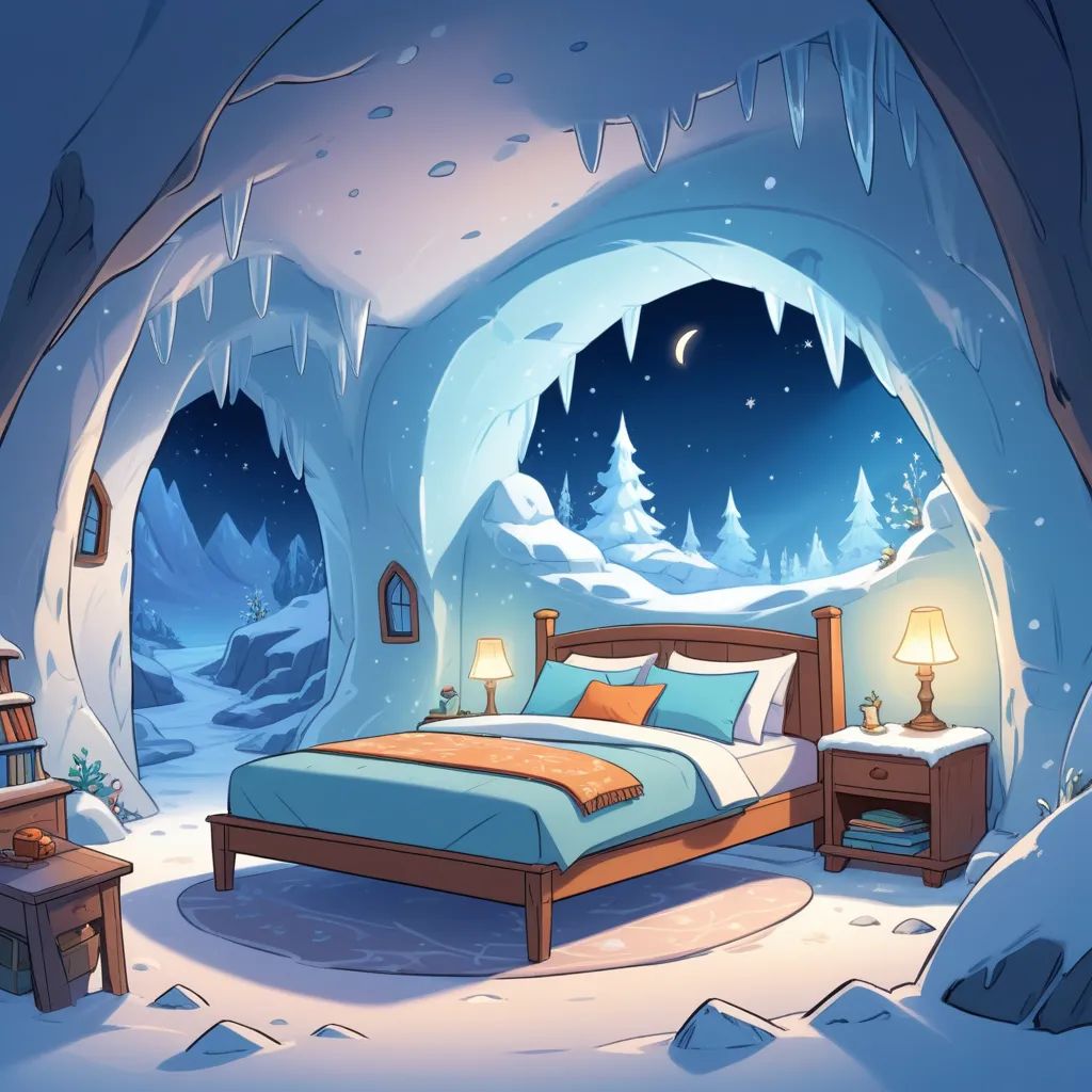In a cozy yet slightly eerie bedroom, dimly lit by a single moonbeam streaming through the window, young Max lay in his bed. His room was filled with peculiar objects: a globe that spun on its own, a wardrobe labeled "Adventures Inside," and posters of snow-covered mountains and brave snowboarders. As the wind howled outside, ruffling the curtains, Max could feel a special kind of excitement building up. Tonight was going to be different.