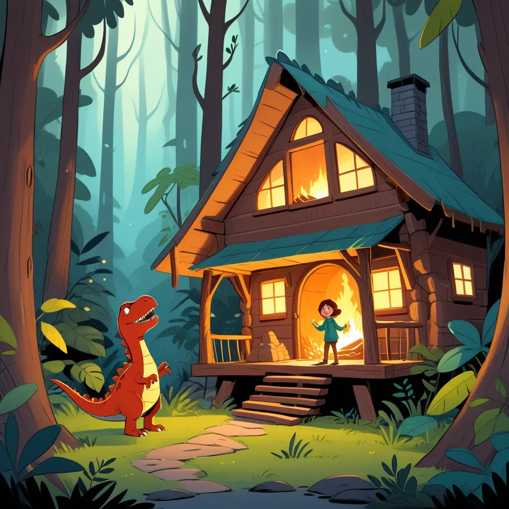 And so, in the quiet and cozy cabin, beneath a starlit sky, a brave young girl fell asleep, dreaming of more adventures with her prehistoric friends.