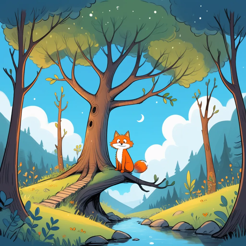 In a cozy valley surrounded by Lerkim trees and sparkling streams, lived a curious child named Lily. Her bedroom, filled with wonders, had a soft glow from a star-shaped nightlight, illuminating a shelf crowded with colorful storybooks and a window overlooking the woodland. One night, as she was tucked into bed, a cool breeze whispered through her window, carrying a mysterious voice.