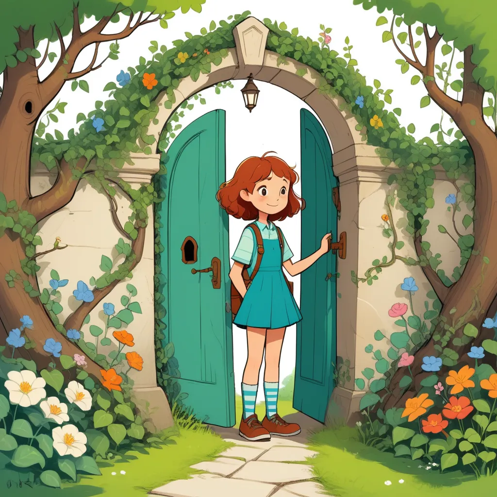 One rainy day, as Mary explored the gardens around the house, she stumbled upon a rusty old key buried beneath the soil. Looking around, she noticed a hidden door covered in ivy. Mary's heart began to race with excitement. She quickly cleared the ivy away and, with her little hands trembling, fit the key into the lock.