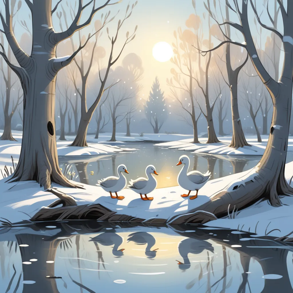 One sunny day as the ice began to melt, he came across a serene pond. He marveled at the beauty of the reflection of the blue sky. On that pond, he saw a group of elegant swans gliding gracefully across the water. They were the most beautiful creatures he had ever seen.