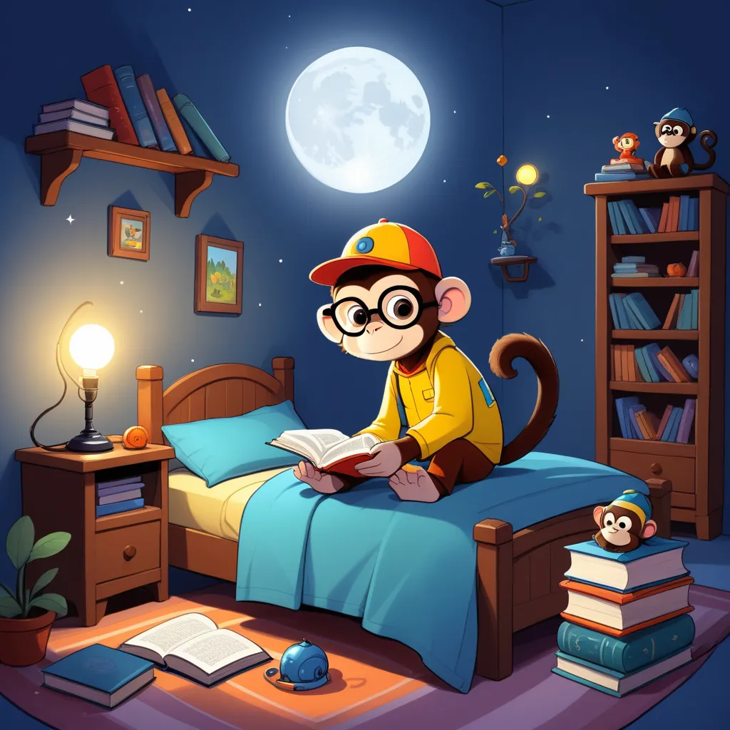 In a quaint, cozy bedroom, filled with stacks of colorful books and a tower of toys, little Timmy sat cross-legged on his bed. His superhero-themed nightlight flickered, casting playful shadows on the walls. As the moon peeked through the curtains, an eerie yet exciting vibe filled the room.