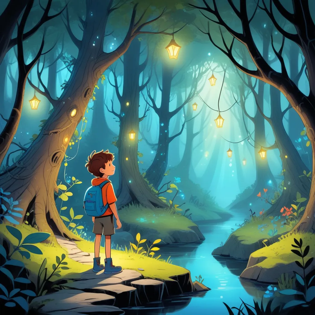 Strings of multicolored lights danced around a cozy yet slightly eerie room. It was the bedroom of young Malcom, a curious boy with shelves filled with jars of glowing bugs and ancient stones. His window, always slightly ajar, invited whispers of wind that tickled the wind chimes hanging above his bed. Tonight, however, the whispers seemed different—like faint calls from a distant adventure.