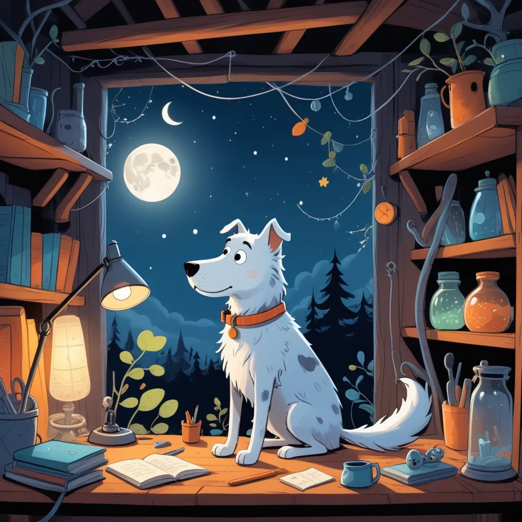Bernie wagged his tail, happy to be part of George's incredible journey. And in that heartfelt moment, surrounded by their cozy yet mysterious workshop, they both knew that sometimes the tiniest things can inspire the greatest ideas.