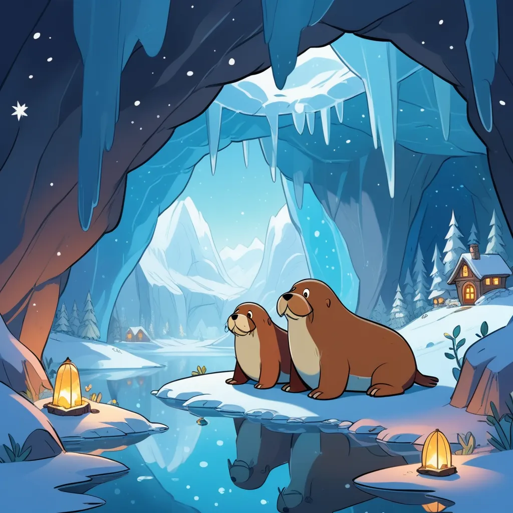 In a snug, little cove on Frosty Island, where the snow glittered like diamonds and the wind sang a soft lullaby, a young walrus named Walter lived in a cozy ice cave. Walter loved collecting things—colorful seashells, shiny pebbles, and even bits of driftwood. He kept these treasures carefully stacked around his ice cave, where they seemed to tell stories of their own.